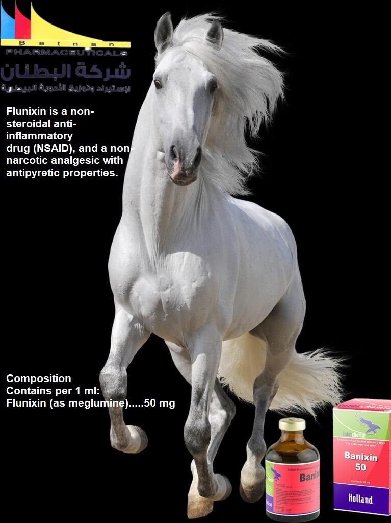 الخيول: يستخدم بانيكسين-50 لتخفيف العلامات الالتهابية المرتبطة بالاضطرابات العضلية الهيكلية ولتخفيف الألم المغص الحشوي المصاحب.